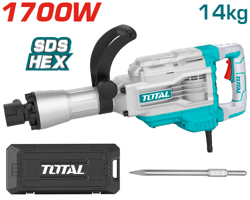 Voltage: 220-240V~50/60Hz Input power: 1700W Impact rate: 1400bmp Impact force: 45J HEX chuck system 14kgs demolition breaker With 1pcs chisel Packed by carrying case