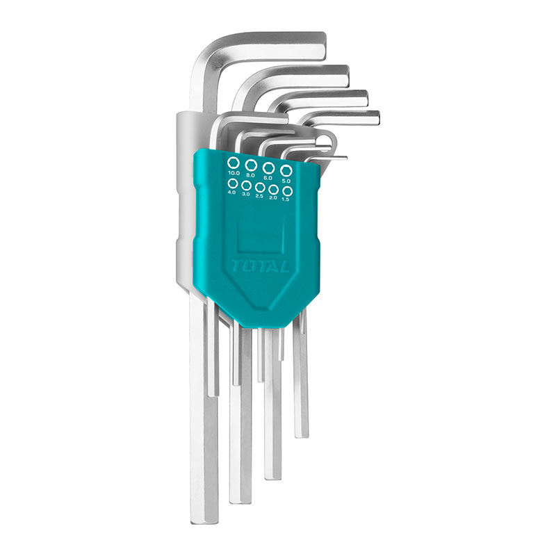 9pcs hex key set Material:Cr-V Size:1.5-10mm Long arm Heat treatment and chrome plate Packed by double blister