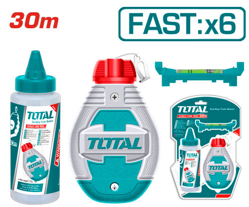 Chalk line reel Fast:X6 Length:30m With 1 bottle chalk With1 pcs blue powder bottle: 4oz/113g Packed by double blister