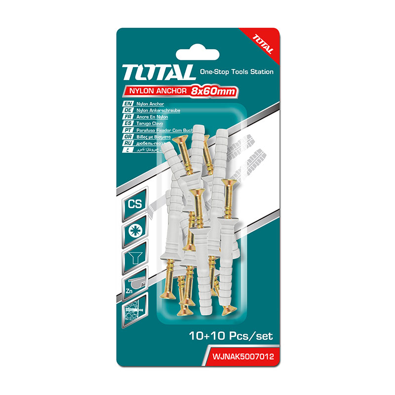 Plug 8x60mm Nylon,Gray color Screw 5.0x70mm Pozi drive, CSK head Heat treatment Yellow Zinc plated finish 10 pcs by blister card
