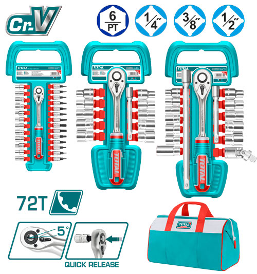 57 Pcs 1/4″&3/8″&1/2″طقم مسكات طقطاق+طرابيش